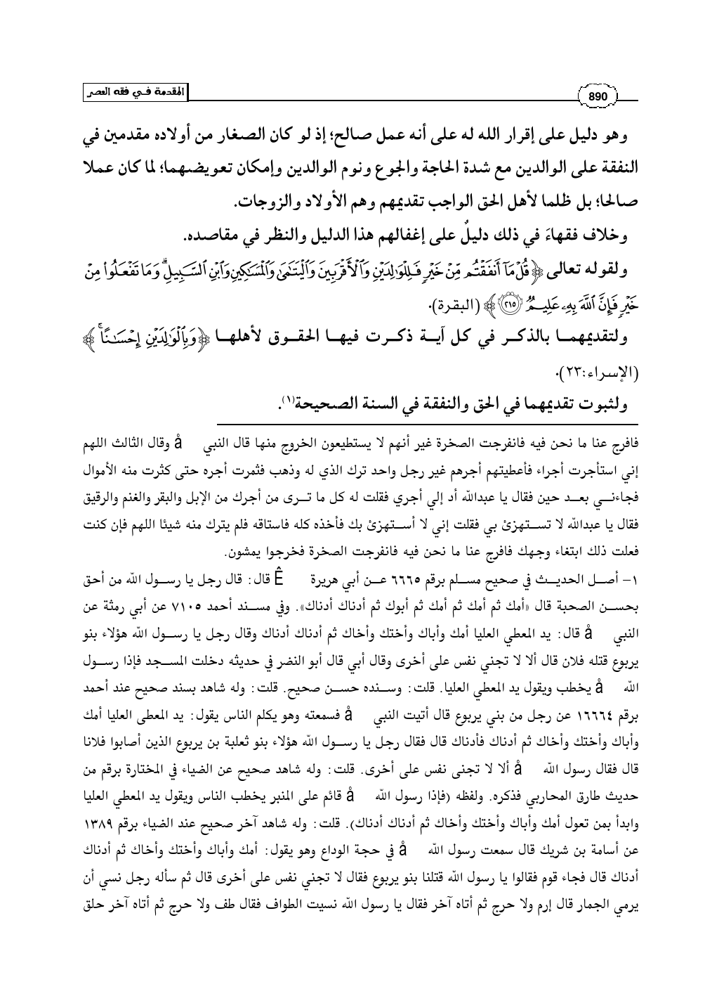 ولقوله تعالى (قُلْ مَا أَنفَقْتُم مِّنْ خَيْرٍ فَلِلْوَالِدَيْنِ وَالأَقْرَبِينَ وَالْيَتَامَى وَالْمَسَاكِينِ وَابْنِ السَّبِيلِ وَمَا تَفْعَلُوا مِنْ خَيْرٍ فَإِنَّ اللَّهَ بِهِ عَلِيمٌ) (البقرة: 215).