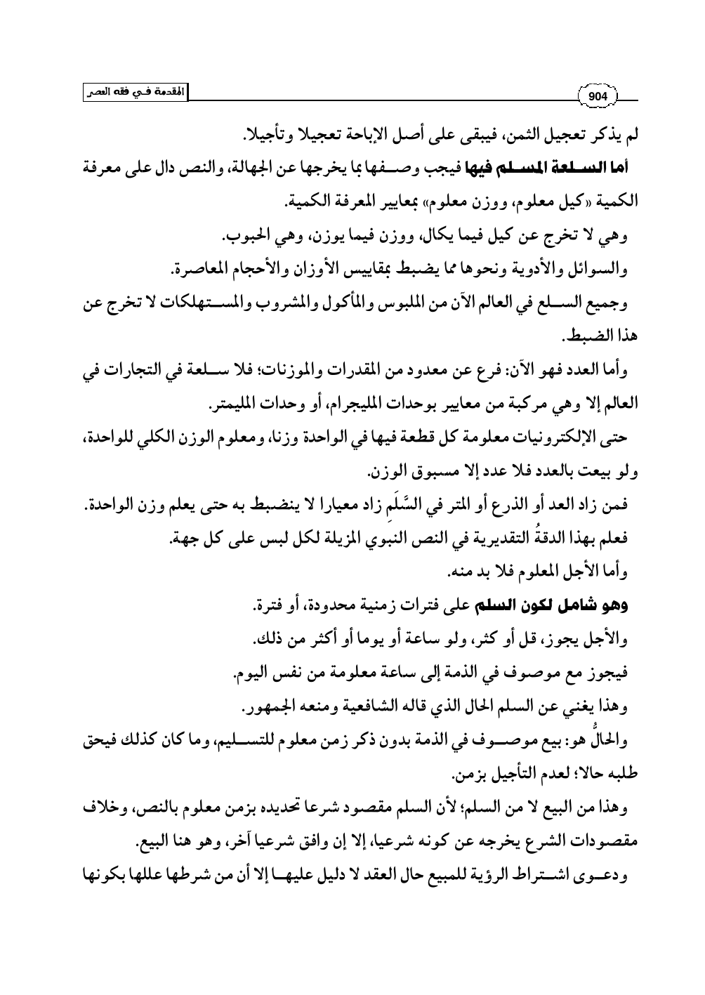 أما السلعة المسلم فيها فيجب وصفها بما يخرجها عن الجهالة، والنص دال على معرفة الكمية «كيل معلوم، ووزن معلوم» بمعايير المعرفة الكمية.