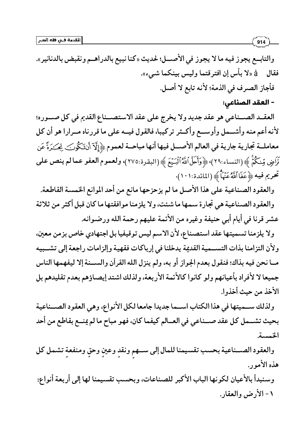 ولذلك سميتها في هذا الكتاب اسما جديدا جامعا لكل الأنواع، وهي العقود الصناعية بحيث تشمل كل عقد صناعي في العالم كيفما كان، فهو مباح ما لم يمنع بقاطع من أحد الخمسة.
