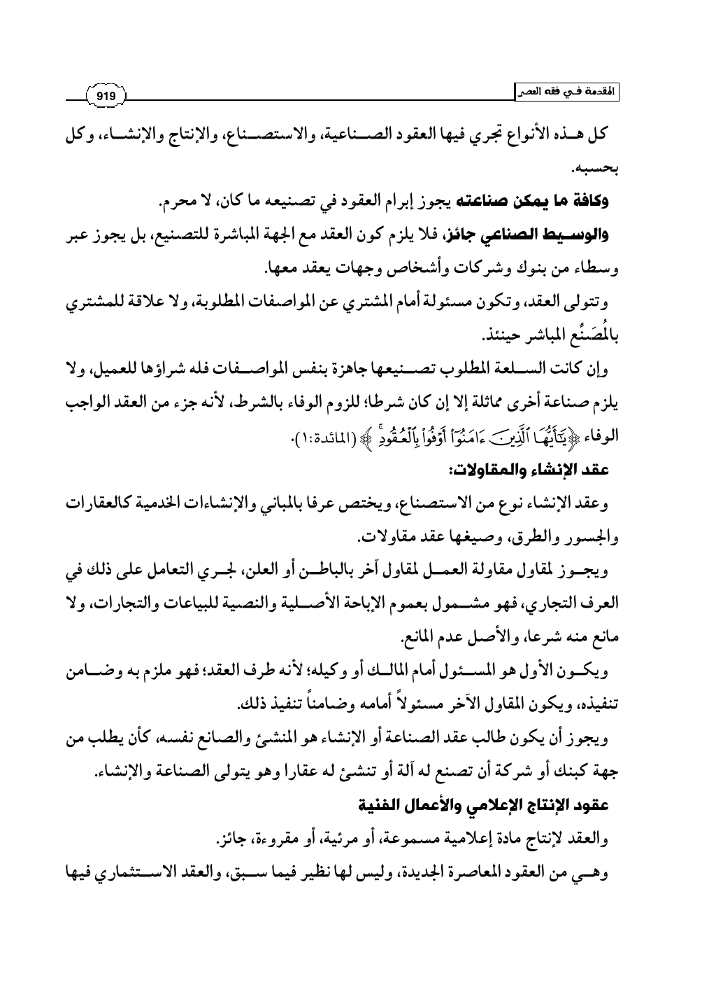 كل هذه الأنواع تجري فيها العقود الصناعية، والاستصناع، والإنتاج والإنشاء، وكل بحسبه.