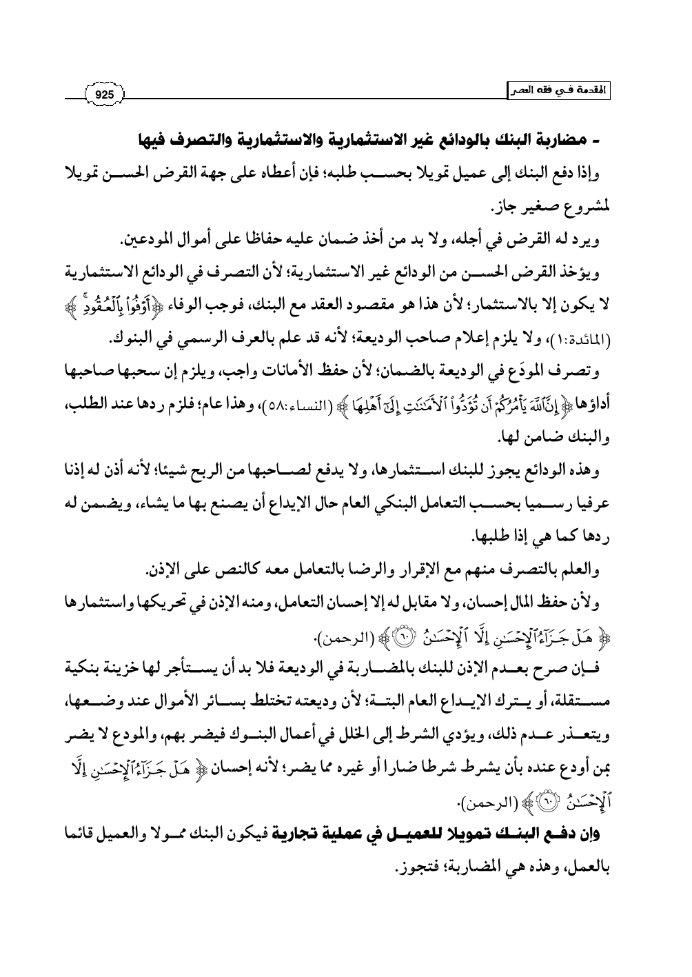 - مضاربة البنك بالودائع غير الاستثمارية والاستثمارية والتصرف فيها