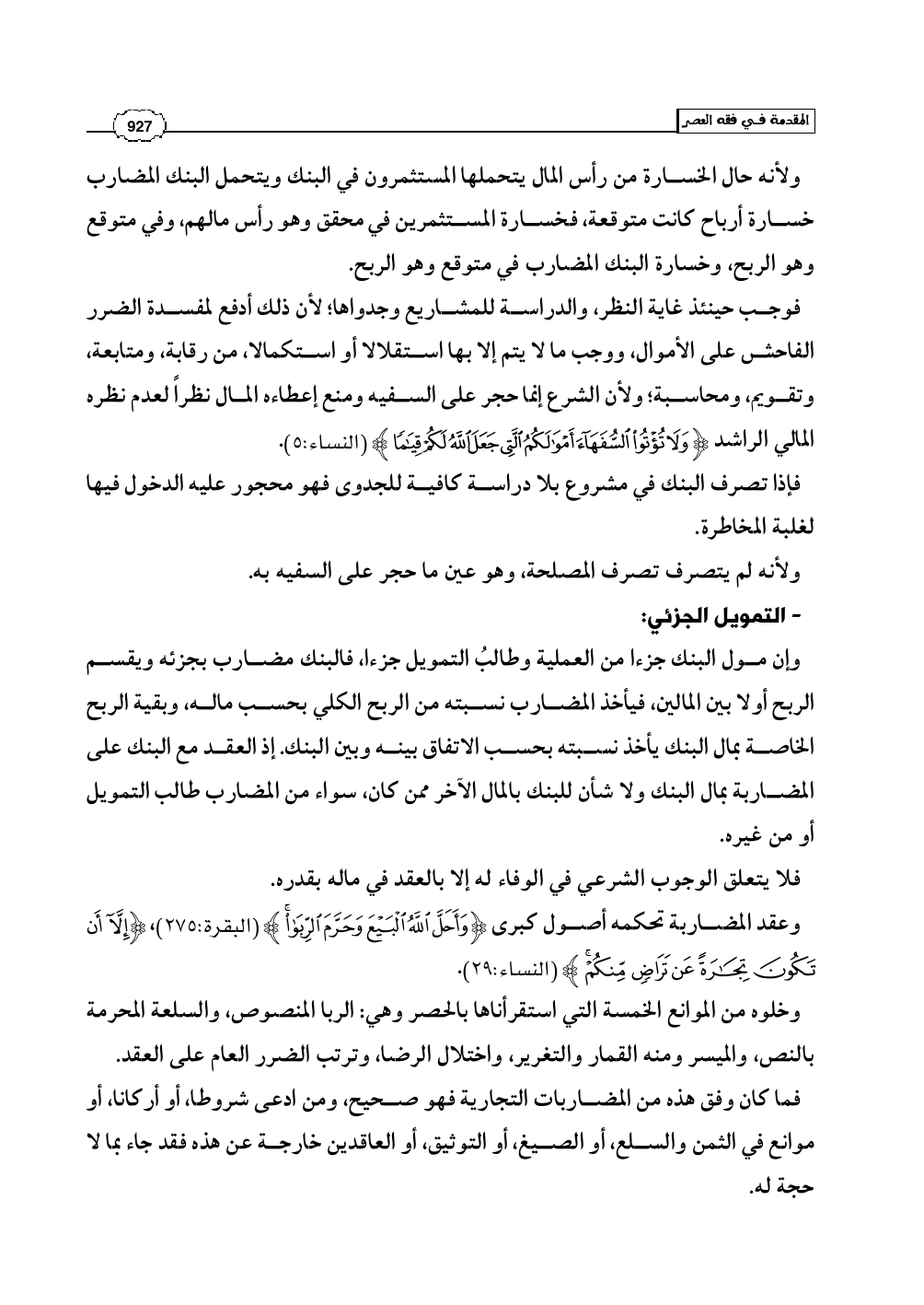 فوجب حينئذ غاية النظر، والدراسة للمشاريع وجدواها؛ لأن ذلك أدفع لمفسدة الضرر الفاحش على الأموال، ووجب ما لا يتم إلا بها استقلالا أو استكمالا، من رقابة، ومتابعة، وتقويم، ومحاسبة؛ ولأن الشرع إنما حجر على السفيه ومنع إعطاءه المال نظراً لعدم نظره المالي الراشد (وَلاَ تُؤْتُوا السُّفَهَاء أَمْوَالَكُمُ الَّتِي جَعَلَ اللَّهُ لَكُمْ قِيَاماً) (النساء: 5).