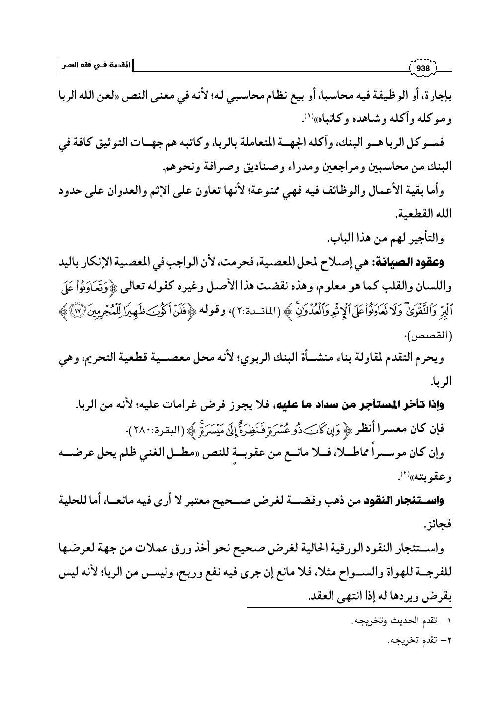 وعقود الصيانة: هي إصلاح لمحل المعصية، فحرمت، لأن الواجب في المعصية الإنكار باليد واللسان والقلب كما هو معلوم، وهذه نقضت هذا الأصل وغيره كقوله تعالى (وَتَعَاوَنُوا عَلَى الْبرِّ وَالتَّقْوَى وَلاَ تَعَاوَنُوا عَلَى الإِثْمِ وَالْعُدْوَانِ) (المائدة: 2)، وقوله (فَلَنْ أَكُونَ ظَهِيرًا لِّلْمُجْرِمِينَ) (القصص: 17).