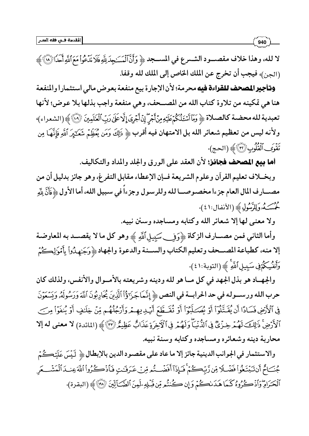 والاستثمار في الجوانب الدينية جائز إلا ما عاد على مقصود الدين بالإبطال (لَيْسَ عَلَيْكُمْ جُنَاحٌ أَن تَبْتَغُوا فَضْلاً مِّن رَّبِّكُمْ فَإِذَا أَفَضْتُم مِّنْ عَرَفَاتٍ فَاذْكُرُوا اللَّهَ عِندَ الْمَشْعَرِ الْحَرَامِ وَاذْكُرُوهُ كَمَا هَدَاكُمْ وَإِن كُنتُم مِّن قَبْلِهِ لَمِنَ الضَّآلِّينَ) (البقرة: 198).