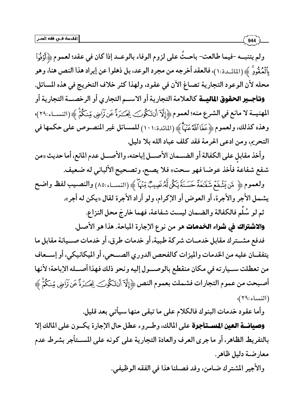 وأما عقود خدمات البنوك فالكلام على ما تبقى منها سيأتي بعد قليل.