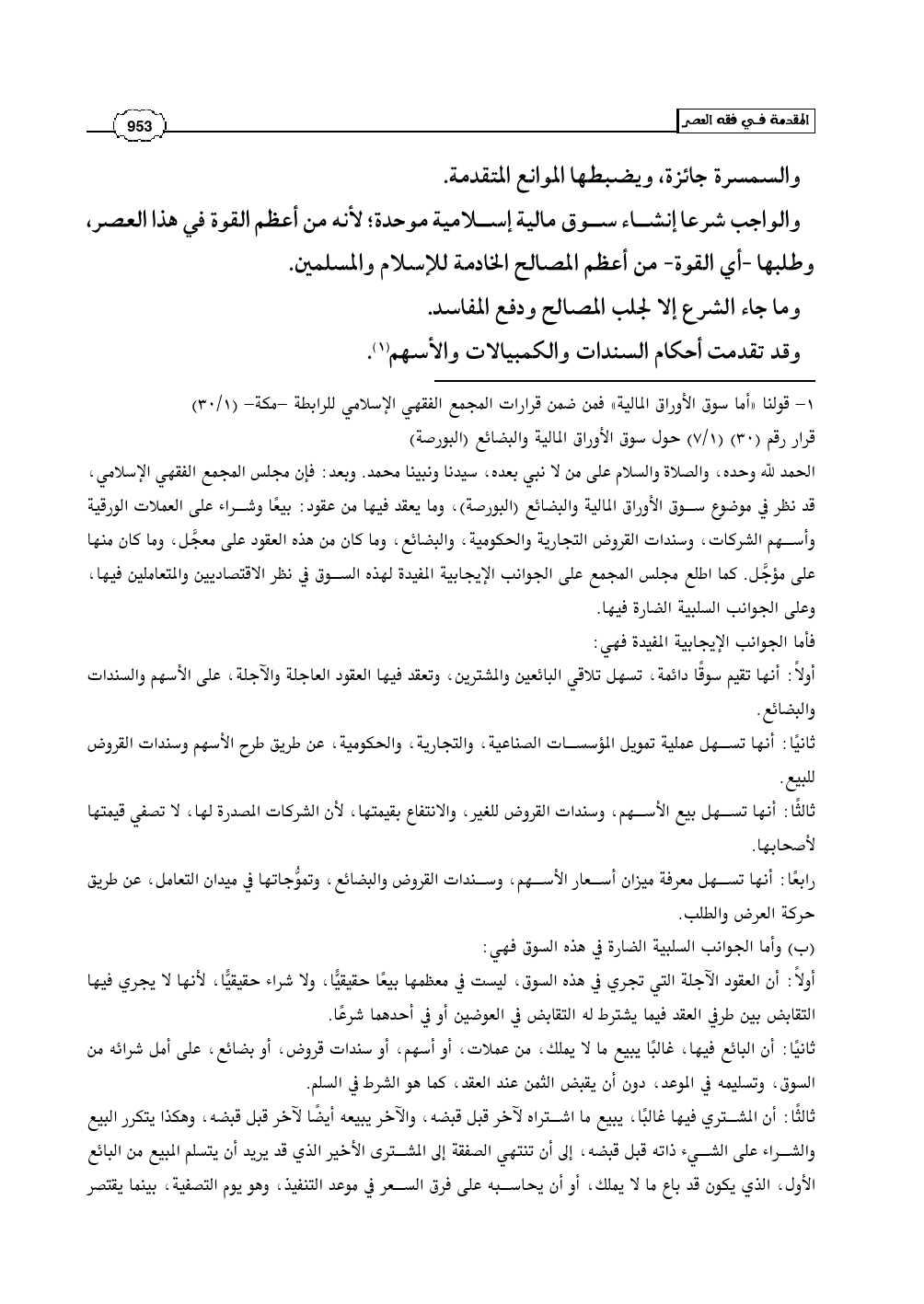(¬1) - قولنا «أما سوق الأوراق المالية» فمن ضمن قرارات المجمع الفقهي الإسلامي للرابطة -مكة- (1/ 30)