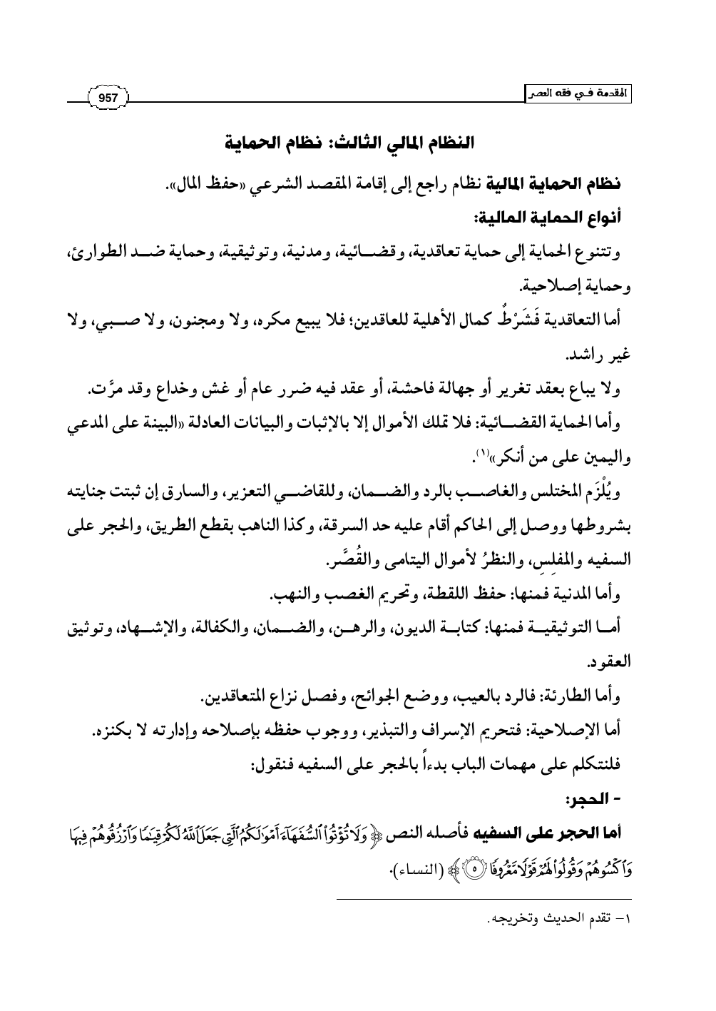 نظام الحماية المالية نظام راجع إلى إقامة المقصد الشرعي «حفظ المال».
