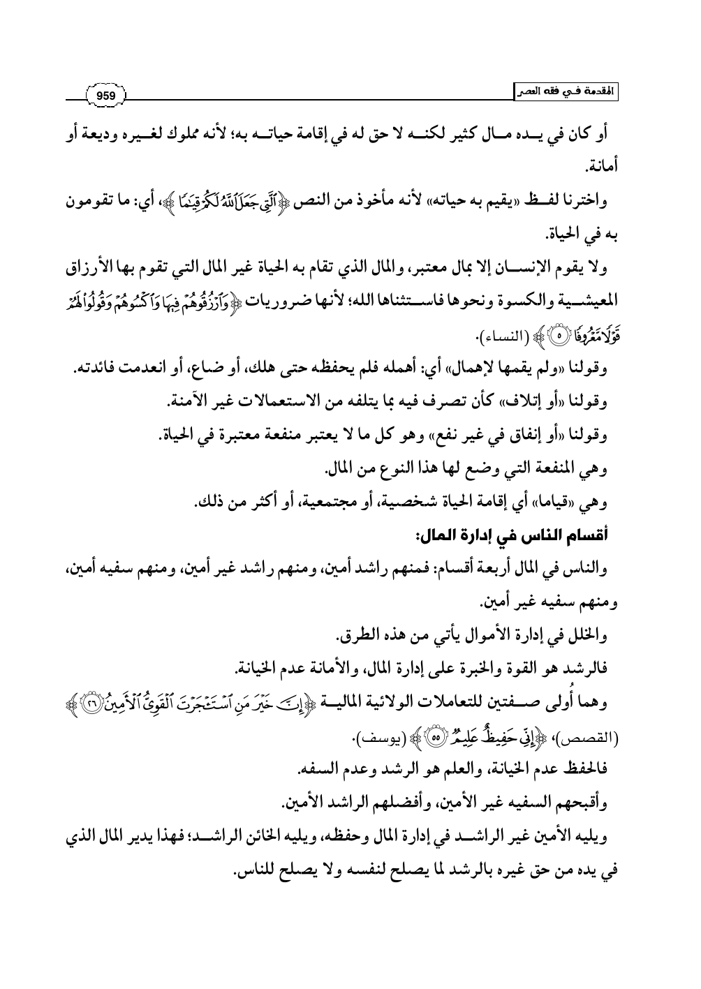 والناس في المال أربعة أقسام: فمنهم راشد أمين، ومنهم راشد غير أمين، ومنهم سفيه أمين، ومنهم سفيه غير أمين.
