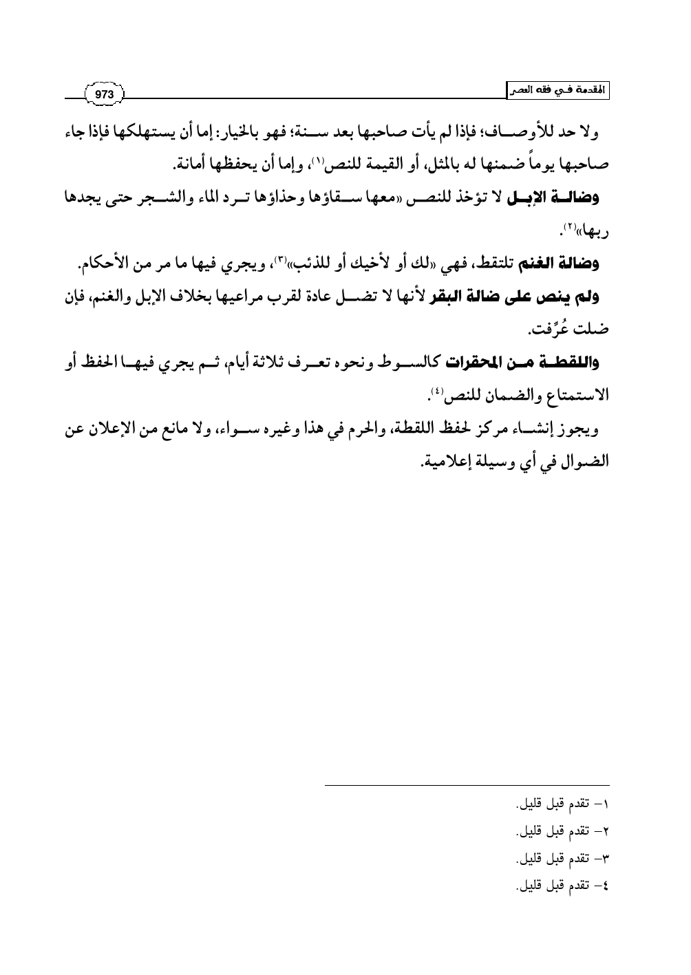 وضالة الإبل لا تؤخذ للنص «معها سقاؤها وحذاؤها ترد الماء والشجر حتى يجدها ربها» (¬2).