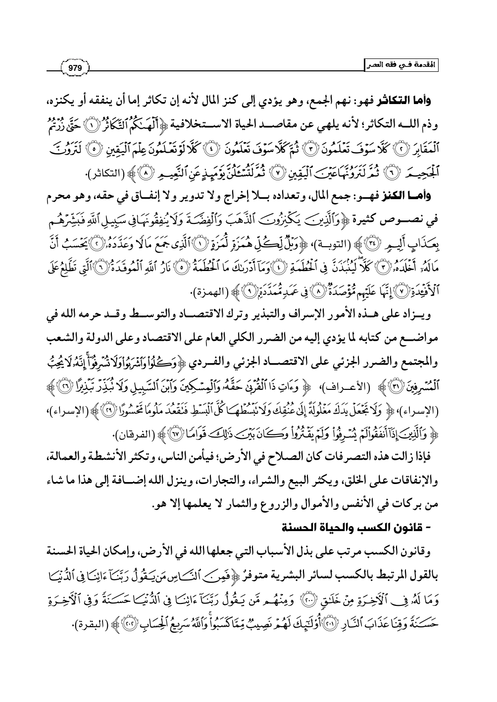 وقانون الكسب مرتب على بذل الأسباب التي جعلها الله في الأرض، وإمكان الحياة الحسنة بالقول المرتبط بالكسب لسائر البشرية متوفرٌ (فَمِنَ النَّاسِ مَن يَقُولُ رَبَّنَا آتِنَا فِي الدُّنْيَا وَمَا لَهُ فِي الآخِرَةِ مِنْ خَلاَقٍ* وِمِنْهُم مَّن يَقُولُ رَبَّنَا آتِنَا فِي الدُّنْيَا حَسَنَةً وَفِي الآخِرَةِ حَسَنَةً وَقِنَا عَذَابَ النَّارِ* أُولَئِكَ لَهُمْ نَصِيبٌ مِّمَّا كَسَبُوا وَاللَّهُ سَرِيعُ الْحِسَابِ) (البقرة: 200 - 202).