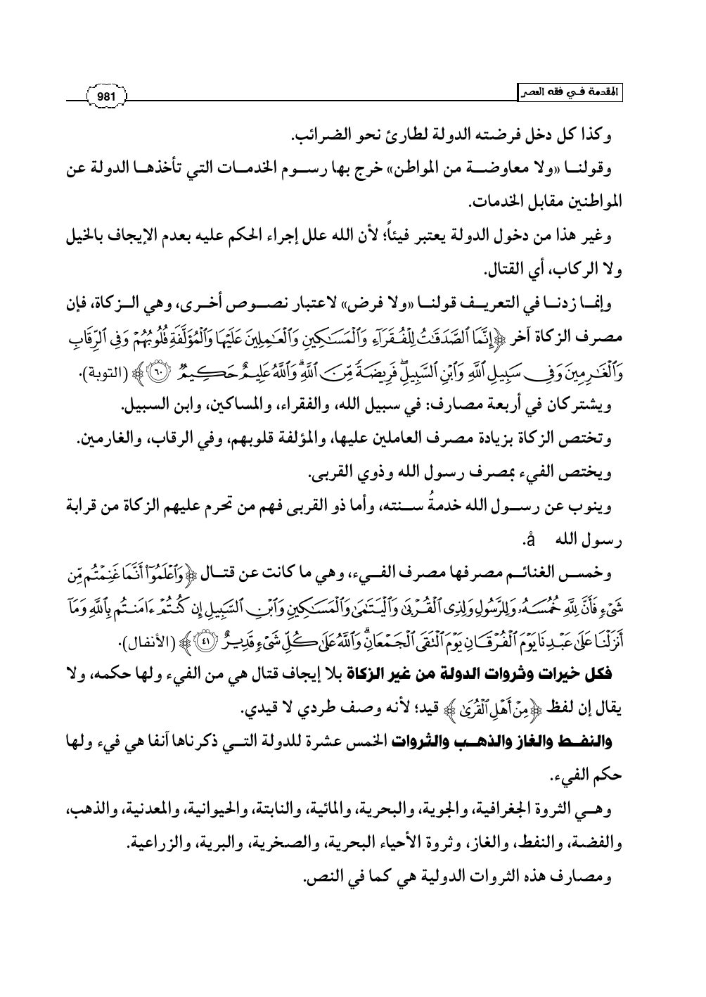 فكل خيرات وثروات الدولة من غير الزكاة بلا إيجاف قتال هي من الفيء ولها حكمه، ولا يقال إن لفظ (مِنْ أَهْلِ الْقُرَى) قيد؛ لأنه وصف طردي لا قيدي.