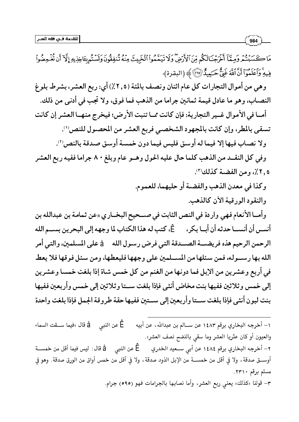 (¬3) - قولنا «كذلك» يعني ربع العشر، وأما نصابها بالجرامات فهو (595) جرام.