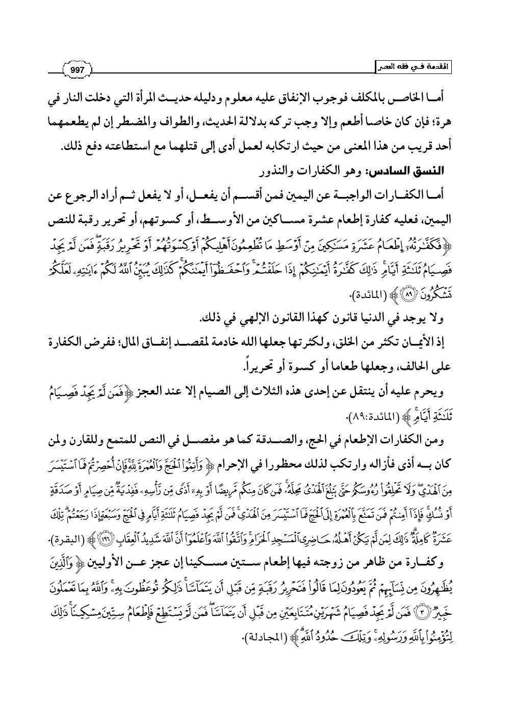 أما الخاص بالمكلف فوجوب الإنفاق عليه معلوم ودليله حديث المرأة التي دخلت النار في هرة؛ فإن كان خاصا أطعم وإلا وجب تركه بدلالة الحديث، والطواف والمضطر إن لم يطعمهما أحد قريب من هذا المعنى من حيث ارتكابه لعمل أدى إلى قتلهما مع استطاعته دفع ذلك.
