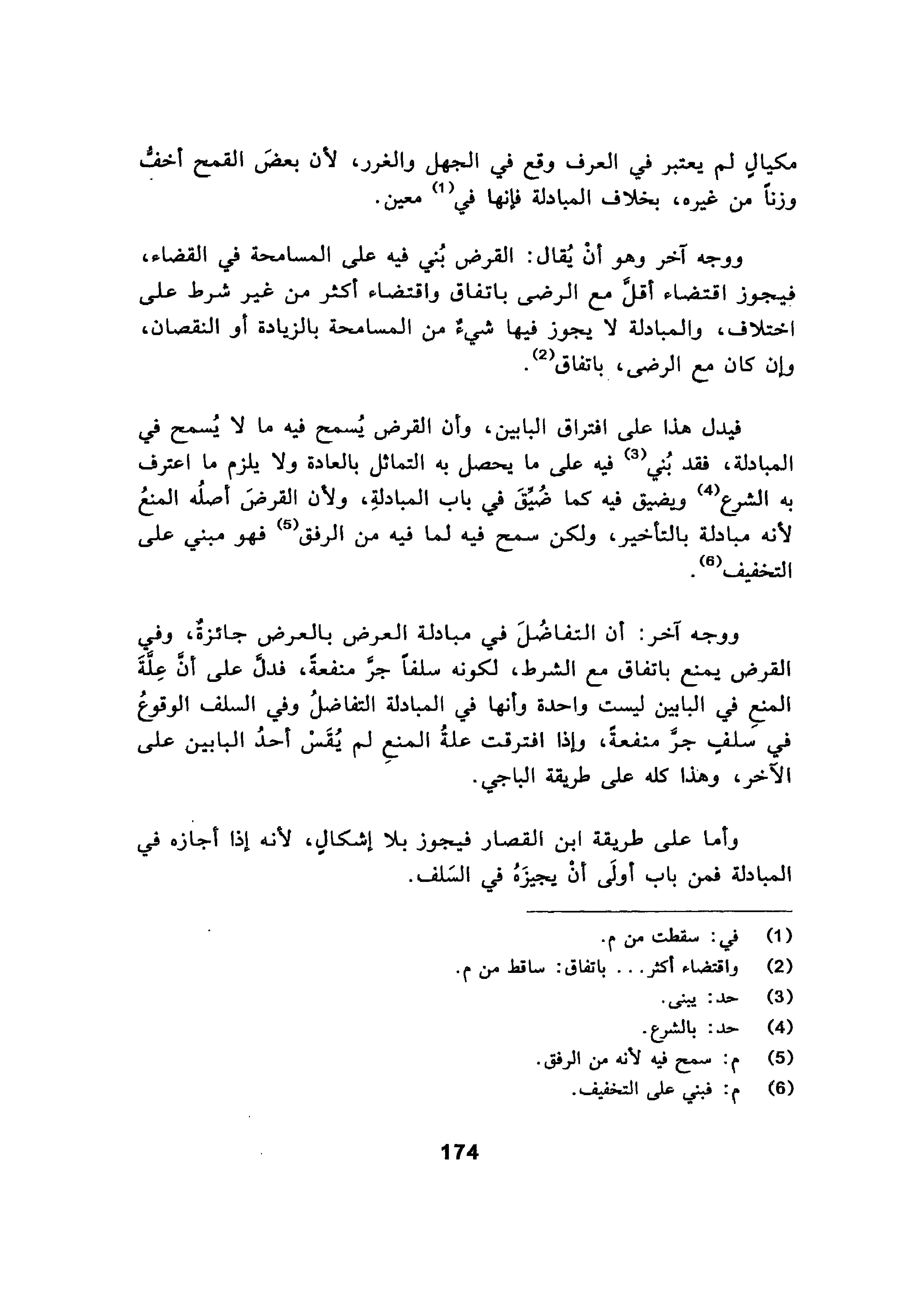 والقول الثاني: أنه يُعتبر فيها ما قرر في الشرع في ذلك الشيء من كيل أو وزن، وهذا قول الباجي ومال إليه بعده جماعة من المتأخرين كابن