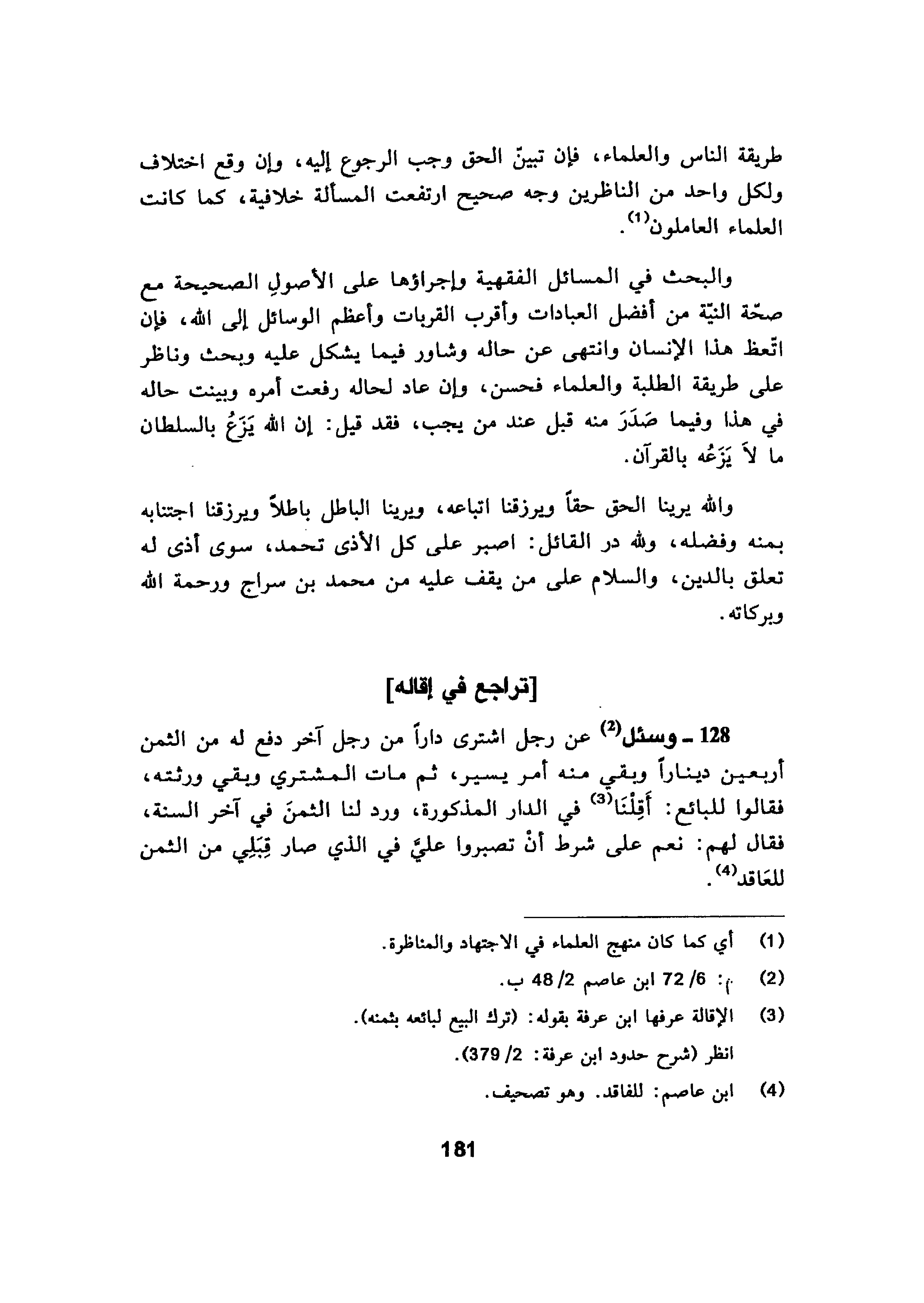 أنفسهم وحيرة في دينهم لمجرد نظره من غير استناد لمن يعتمد عليه من العلماء، فهذا ما يتعلق بالمسألة من الفقه.