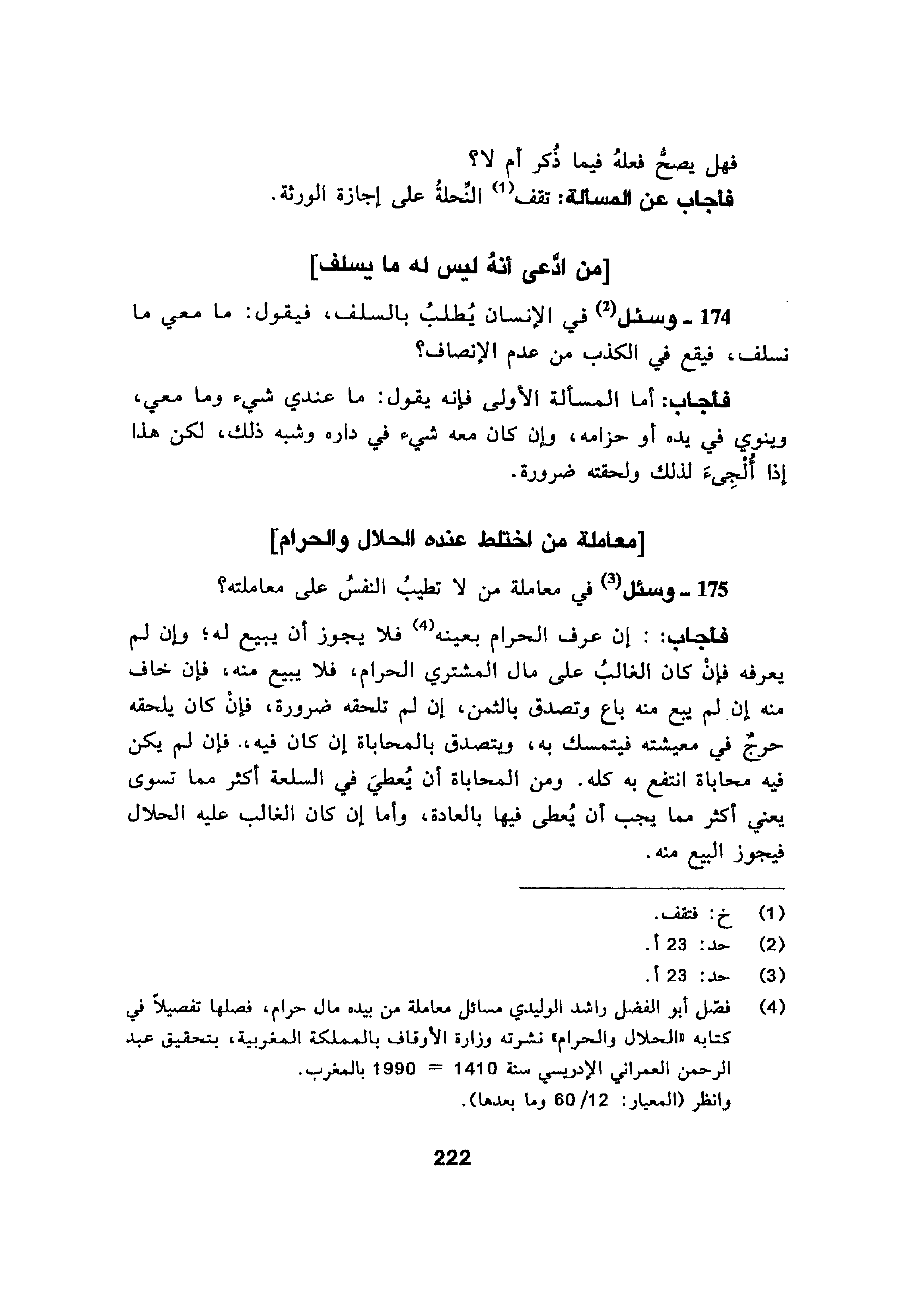 وسئل في الإنسان يُطلبُ بالسلف، فيقول: ما معي ما نسلف، فيقع في الكذب من عدم الإنصاف؟