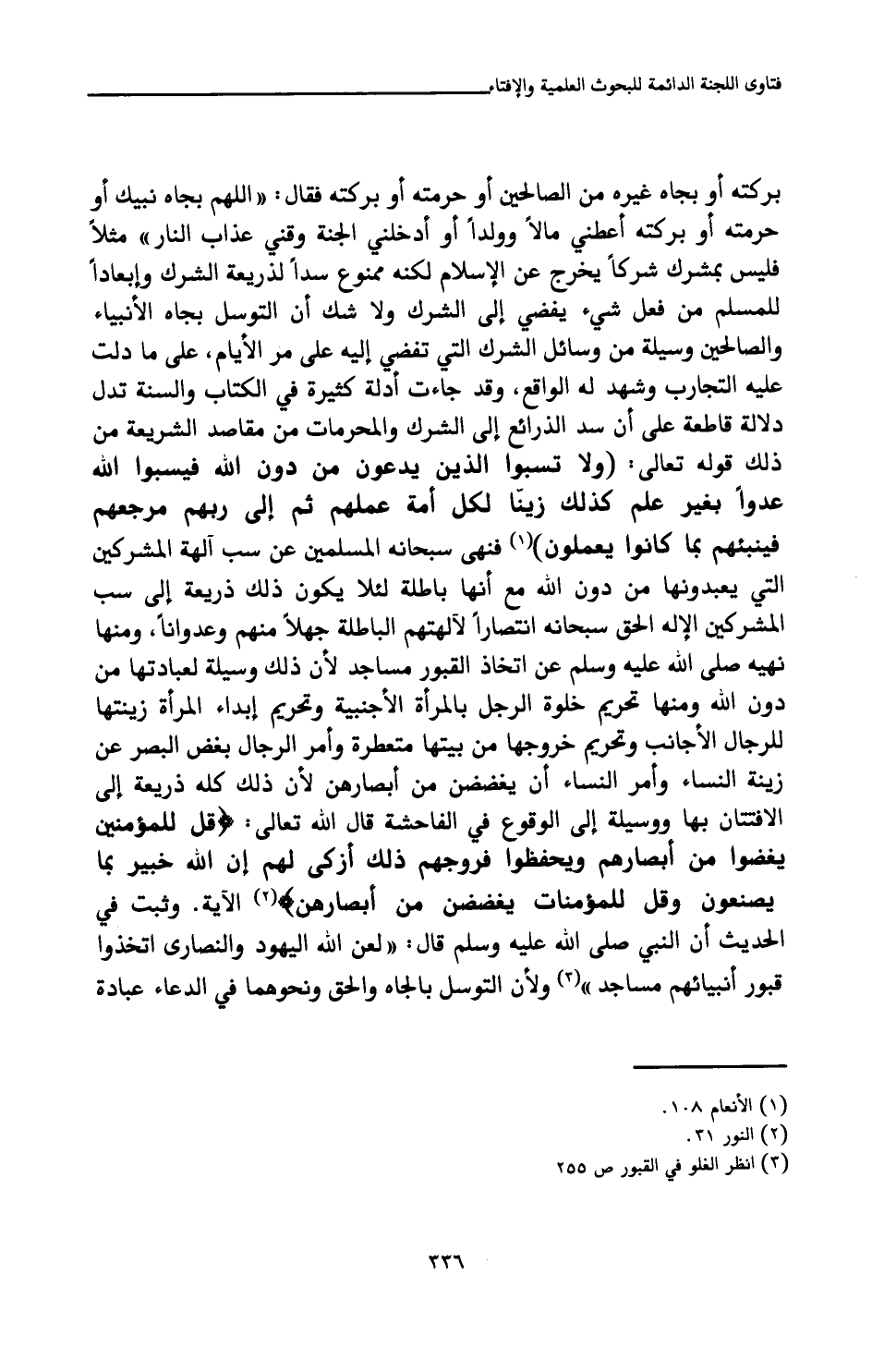 ج4: السجود لغير الله شرك، والذبح لغير الله شرك أيضا، فمن سجد لغير الله أو ذبح لغير الله بعد بيان حكم ذلك له فهو مشرك كافر لا يقبل الله منه صرفا ولا عدلا وإن صلى وصام، فإن أعمال المشرك لا تقبل منه وإذا مات على الشرك فإن الله لا يغفر له، قال تعالى: {إِنَّ اللَّهَ لَا يَغْفِرُ أَنْ يُشْرَكَ بِهِ وَيَغْفِرُ مَا دُونَ ذَلِكَ لِمَنْ يَشَاءُ} (¬1) وقال تعالى: {إِنَّهُ مَنْ يُشْرِكْ بِاللَّهِ فَقَدْ حَرَّمَ اللَّهُ عَلَيْهِ الْجَنَّةَ وَمَأْوَاهُ النَّارُ وَمَا لِلظَّالِمِينَ مِنْ أَنْصَارٍ} (¬2) وقال تعالى: {وَلَوْ أَشْرَكُوا لَحَبِطَ عَنْهُمْ مَا كَانُوا يَعْمَلُونَ} (¬3) أما إن تاب قبل الموت توبة نصوحا فإن الله يغفر له، كما قال سبحانه: {قُلْ يَا عِبَادِيَ الَّذِينَ أَسْرَفُوا عَلَى أَنْفُسِهِمْ لَا تَقْنَطُوا مِنْ رَحْمَةِ اللَّهِ إِنَّ اللَّهَ يَغْفِرُ الذُّنُوبَ جَمِيعًا} (¬4) أجمع علماء الإسلام أن هذه الآية نزلت في التائبين، أما آية النساء، وهي قوله تعالى: {إِنَّ اللَّهَ لَا يَغْفِرُ أَنْ يُشْرَكَ بِهِ وَيَغْفِرُ مَا دُونَ ذَلِكَ لِمَنْ يَشَاءُ} (¬5) فهي نزلت في حق غير التائبين،