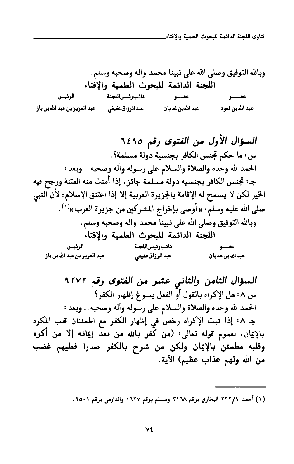 عبد الله بن قعود ... عبد الله بن غديان ... عبد الرزاق عفيفي ... عبد العزيز بن عبد الله بن باز