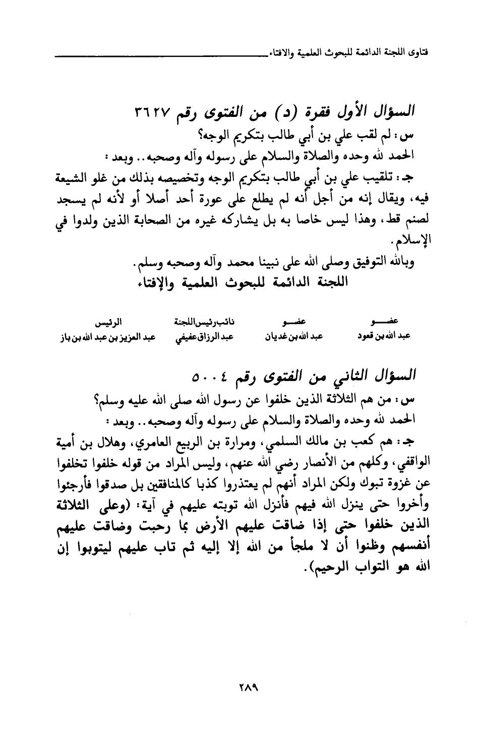 عبد الله بن قعود ... عبد الله بن غديان ... عبد الرزاق عفيفي ... عبد العزيز بن عبد الله بن باز