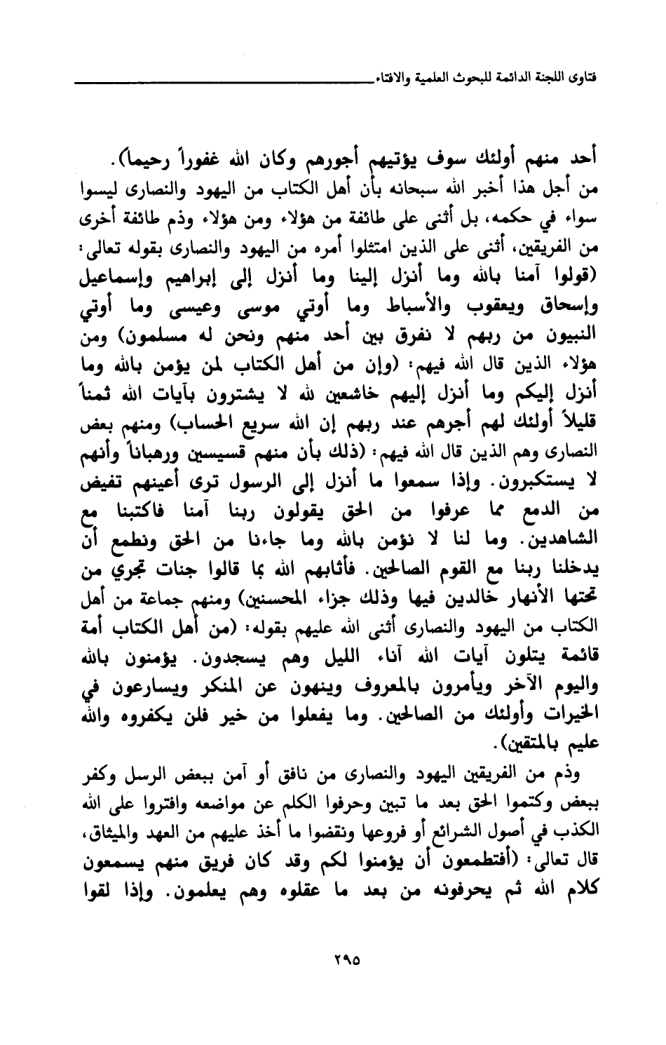 وقالوا الله تعالى تكلم بصفة الجمع، أي بمعنى (الله وعيسى عليه السلام والروح القدس) وقد تشرفنا بزيارة فضيلة الشيخ عبد الرحمن بن عوين وفضيلة الشيخ علي بن فهد بن غيث في هذه الفترة وقد أشارا مشكورين بالكتابة إلى سماحتكم؟