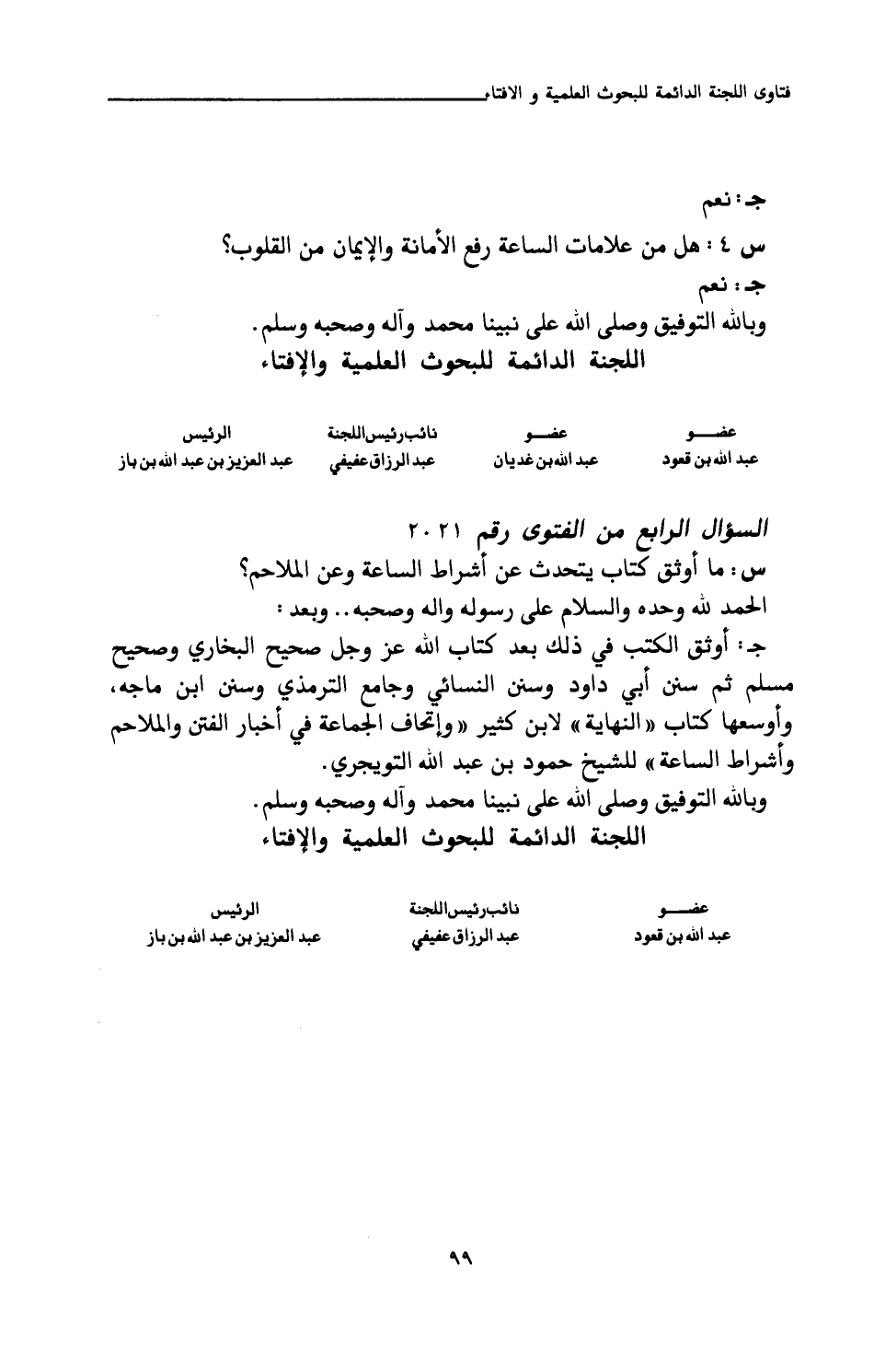 عبد الله بن قعود ... عبد الله بن غديان ... عبد الرزاق عفيفي ... عبد العزيز بن عبد الله بن باز