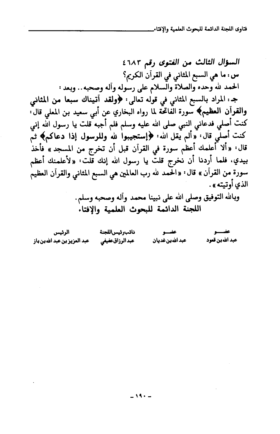 عبد الله بن قعود ... عبد الله بن غديان ... عبد الرزاق عفيفي ... عبد العزيز بن عبد الله بن باز