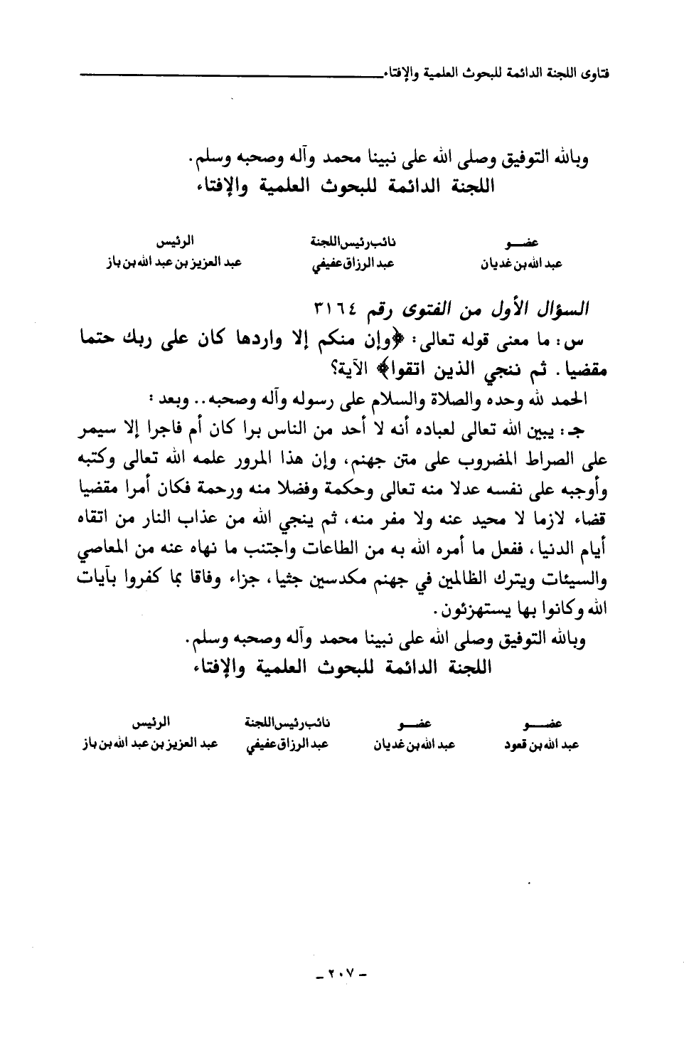 س5: قد يتطاول البعض على كتاب الله فيجعلون تفسير الآيات حسب أهوائهم ليضلوا الناس عن ذلك، مثال ذلك في سورة آل عمران قوله تعالى: {الَّذِينَ يَذْكُرُونَ اللَّهَ قِيَامًا وَقُعُودًا وَعَلَى جُنُوبِهِمْ} (¬1) فيفسرون ذلك على الرقص في الأذكار والهيمنة ومن يتمتم بكلمات غير مفهومة ويميل يمينا ويسارا وهو يقول: الله حي، الله حي، وهكذا وأمور أخرى، فيحللون تحديد النسل، والغناء للنساء والمدح للرسول، ويستعملون في ذلك آلات الغناء والمجون، فنريد منكم التبصير بأمور ديننا وفهمها على حق، والرد على المبتدعين على الدين والكتب الشافية بذلك.