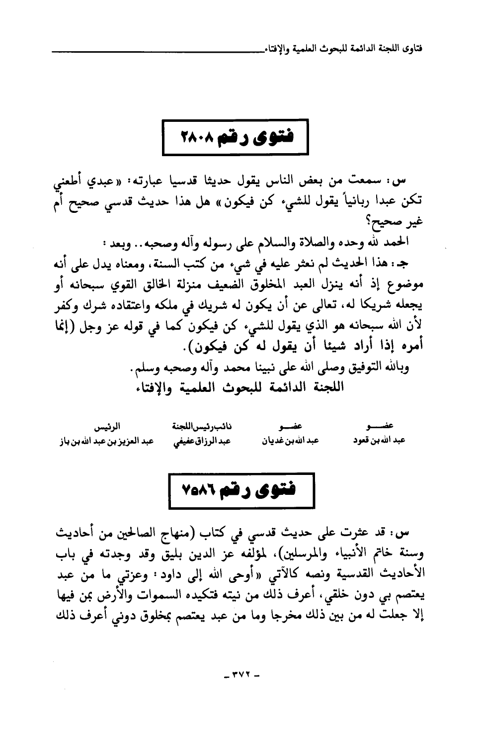 عبد الله بن قعود ... عبد الله بن غديان ... عبد الرزاق عفيفي ... عبد العزيز بن عبد الله بن باز