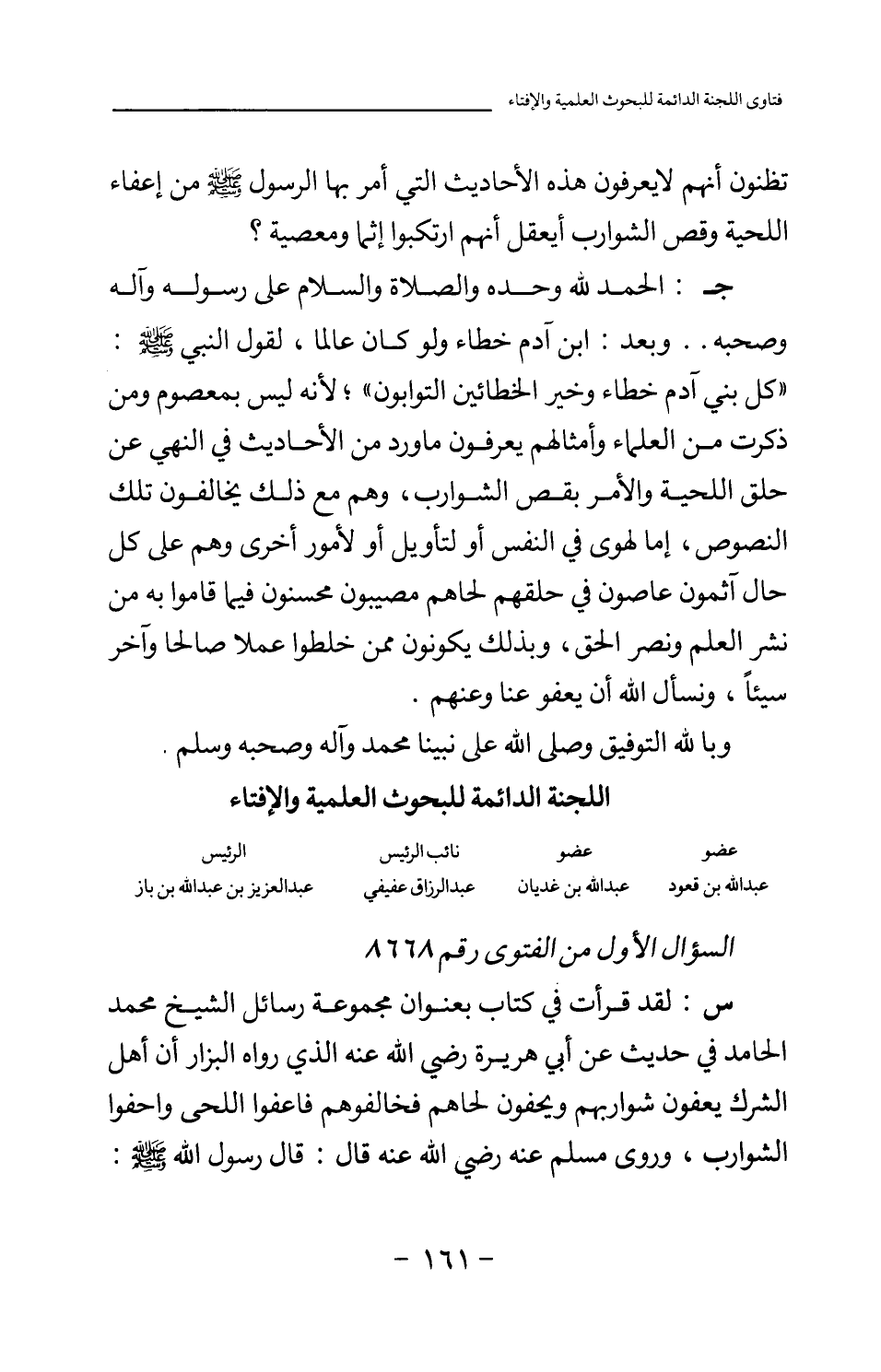 أما من استهزأ بها وشبهها بالعانة فهذا قد أتى منكرا عظيما يوجب ردته عن الإسلام؛ لأن السخرية بشيء مما دل عليه كتاب الله أو سنة رسوله محمد صلى الله عليه وسلم تعتبر كفرا وردة عن الإسلام؛ لقول الله عز وجل {قُلْ أَبِاللَّهِ وَآيَاتِهِ وَرَسُولِهِ كُنْتُمْ تَسْتَهْزِئُونَ} (¬2) {لا تَعْتَذِرُوا قَدْ كَفَرْتُمْ بَعْدَ إِيمَانِكُمْ} (¬3) الآية. ونسأل الله لنا ولكم