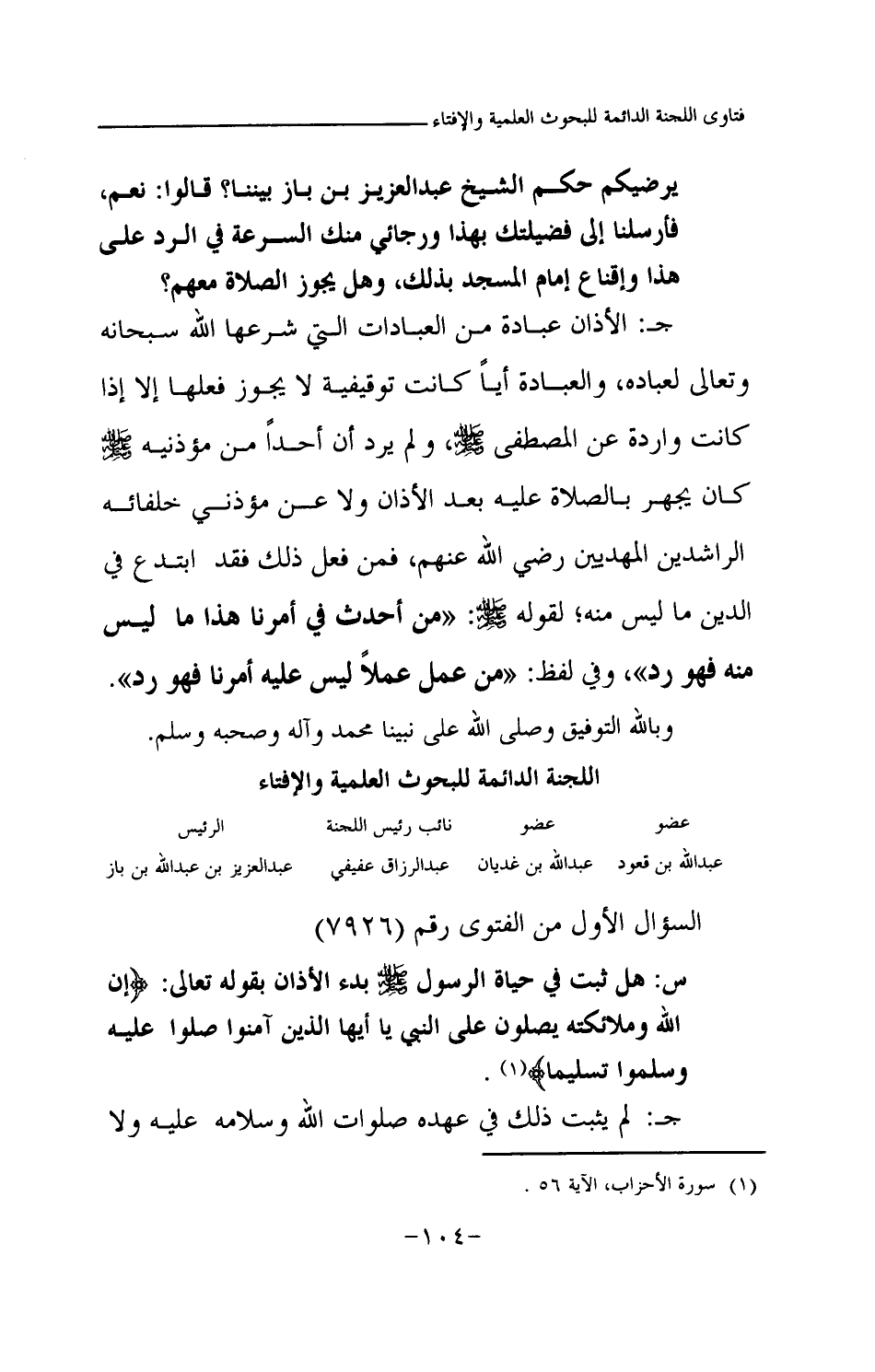 عبد الله بن منيع ... عبد الله بن غديان ... عبد الرزاق عفيفي ... عبد العزيز بن عبد الله بن باز