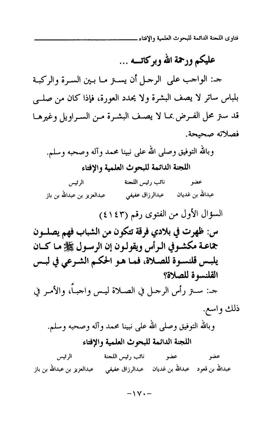 س: فيه إمام يصلي بالناس وهو من الناس الكبار الشيوخ وفي منطقة ريفية، ومنذ زمن وهو يصلي الجمع والأوقات وهو إمام المسجد. سؤالي يقول: هل يجوز للإمام أن يتقدم للمأمومين بدون لبس السروال، يكون في علمكم أن عورته واضحة جدا أمام المصلين، أفيدونا عن ذلك جزاكم الله خيرا؟
