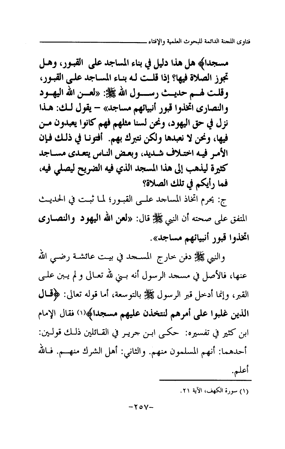 (¬1) أخرجه أحمد 6 / 51، والبخاري 1 / 112 كتاب الصلاة باب الصلاة في البيعة، ومسلم 1 / 375 كتاب المساجد ومواضع الصلاة باب النهي عن بناء المساجد على القبور واتخاذ الصور فيها والنهي عن اتخاذ القبور مساجد، والنسائي 2 / 41 كتاب المساجد باب النهي عن اتخاذ القبور مساجد.
