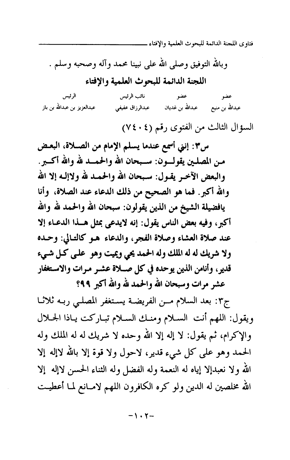 عبد الله بن منيع ... عبد الله بن غديان ... عبد الرزاق عفيفي ... عبد العزيز بن عبد الله بن باز