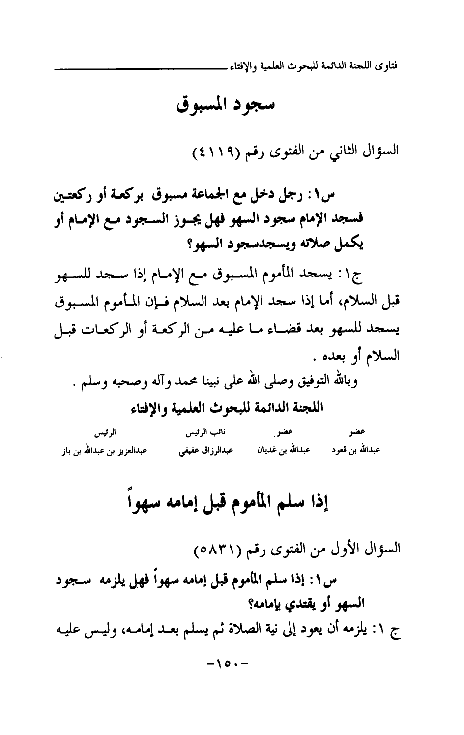 عبد الله بن قعود ... عبد الله بن غديان ... عبد الرزاق عفيفي ... عبد العزيز بن عبد الله بن باز