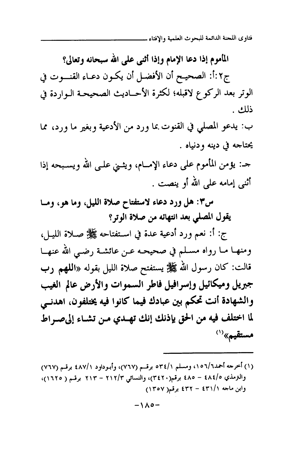 س2: هل قنوت الوتر قبل الركوع أم بعده وما هو الدعاء الوارد في القنوت وهل يجوز الزيادة عليه وماذا يقول المأموم إذا دعا الإمام وإذا أثنى على الله سبحانه وتعالى؟