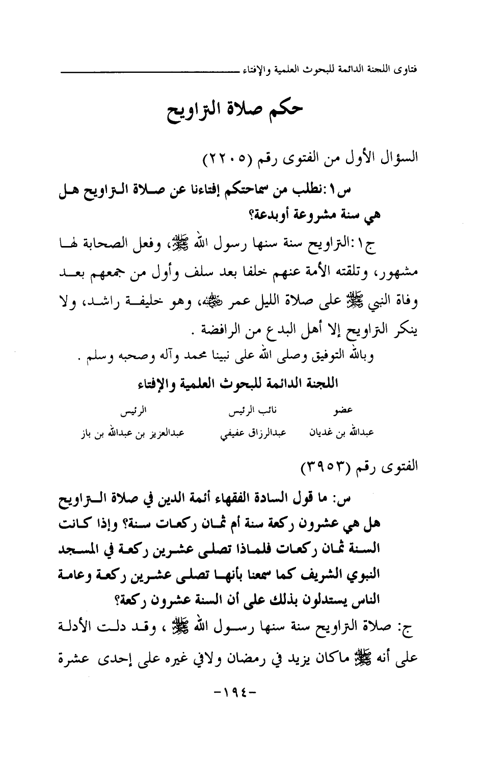 س1: نطلب من سماحتكم إفتاءنا عن صلاة التراويح هل هي سنة مشروعة أو بدعة؟