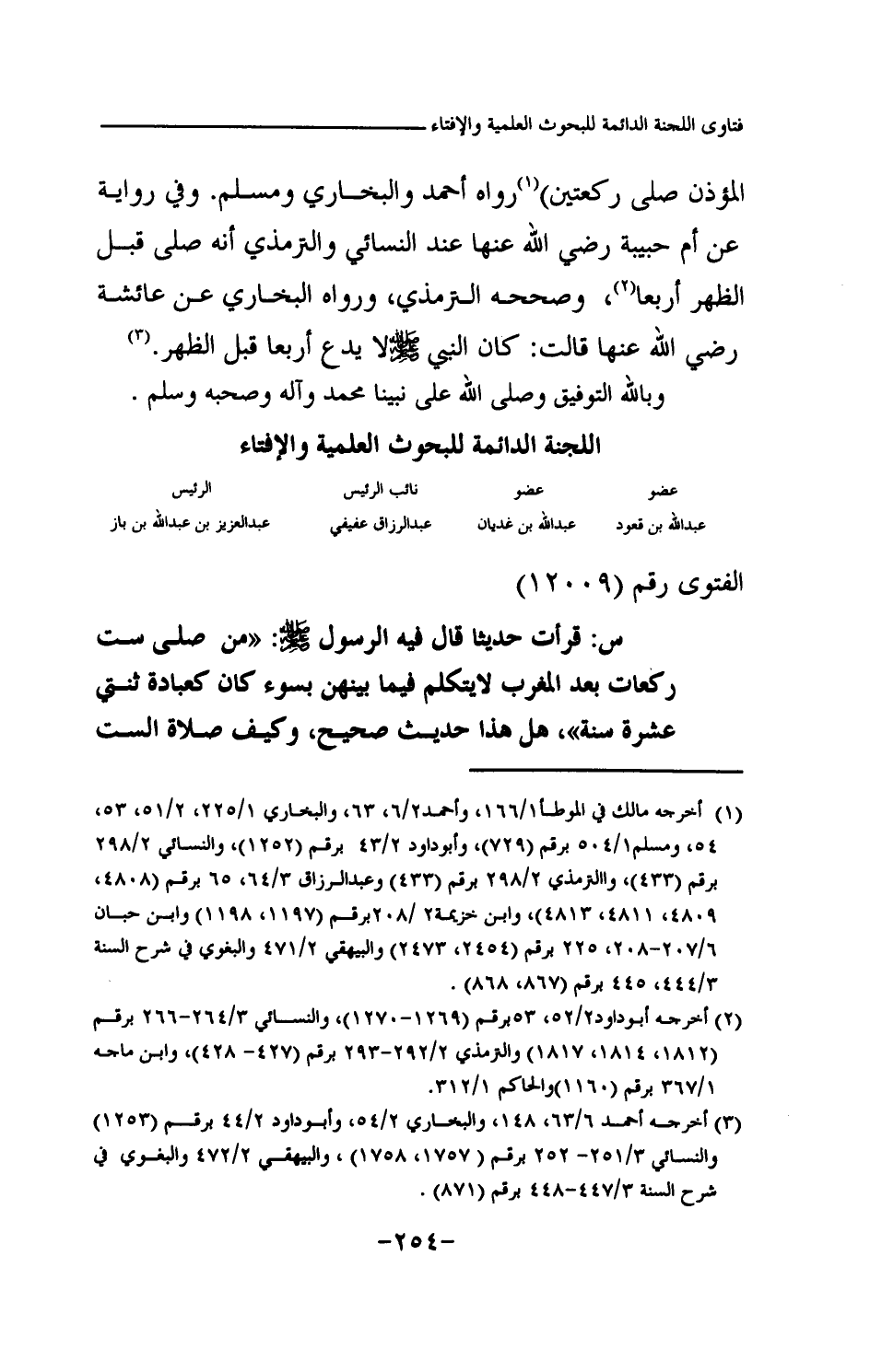 ج: 15 ثبت أن النبي صلى الله عليه وسلم قال: «صلوا قبل المغرب ركعتين، صلوا قبل المغرب ركعتين، صلوا قبل المغرب ركعتين، ثم قال لمن شاء (¬1) » كراهية أن يتخذهما الناس سنة. رواه البخاري ومسلم وفيهما أيضا عن أنس رضي الله عنه قال: «كان المؤذن إذا أذن قام ناس من أصحاب النبي صلى الله عليه وسلم يبتدرون السواري حتى يخرج النبي صلى الله عليه وسلم وهم كذلك، يصلون ركعتين قبل المغرب، ولم يكن بين الأذان والإقامة شيء (¬2) » وفي رواية لمسلم قال: «كنا بالمدينة فإذا أذن المؤذن لصلاة المغرب ابتدروا السواري فركعوا ركعتين حتى أن الرجل الغريب ليدخل المسجد فيحسب أن الصلاة قد