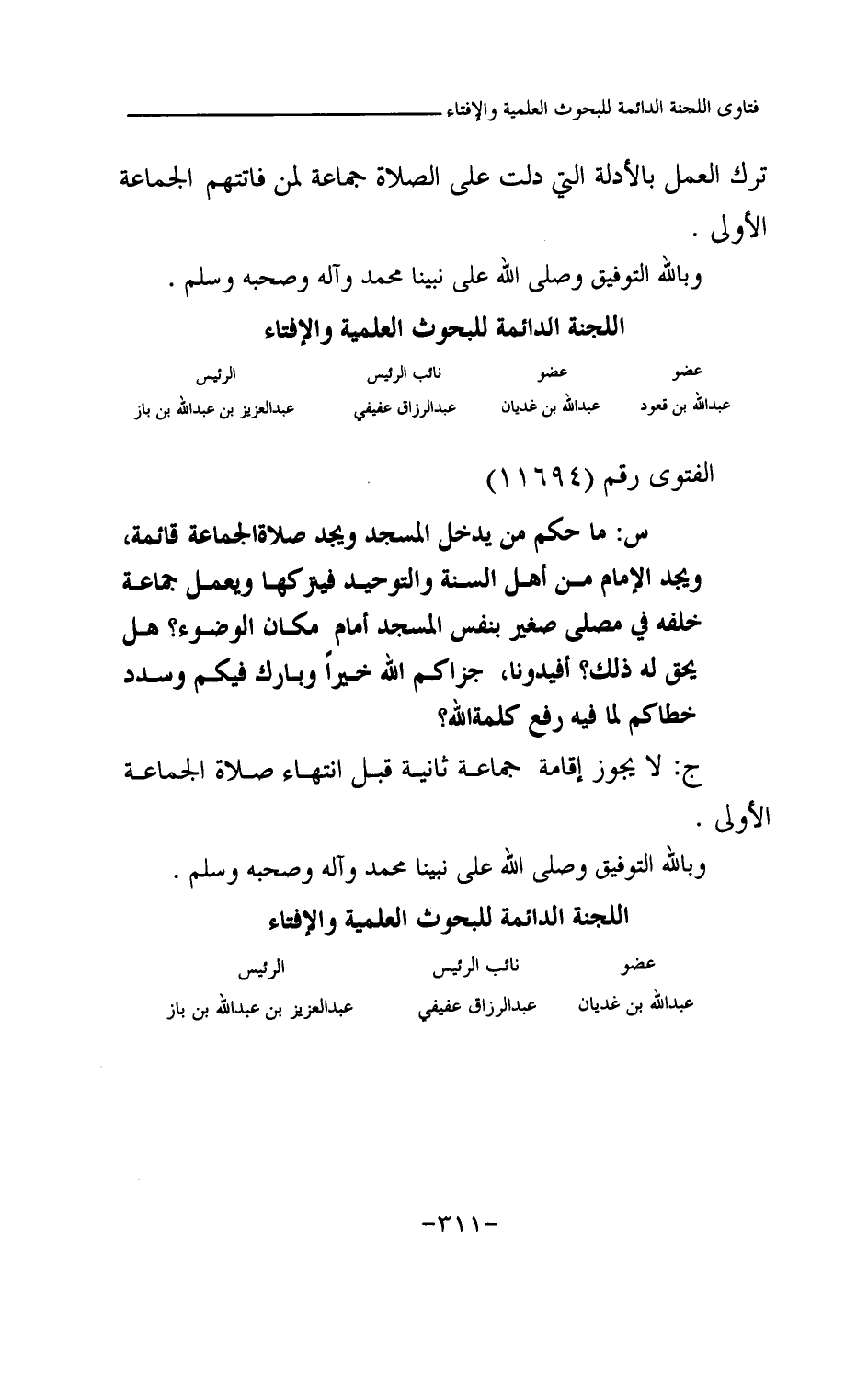 س2: هل لرجال تأخروا عن الجماعة في المسجد ووجدوا الناس قد صلوا أن يصلوا في المسجد جماعة أخرى أو لا؟ وهل هناك تعارض بين حديث «من يتصدق على هذا» وبين قول ابن مسعود رضي الله عنه، أو غيره: كنا إذا فاتتنا الجماعة أو انتهت الجماعة صلينا فرادى أو كما قال رضي الله عنه؟