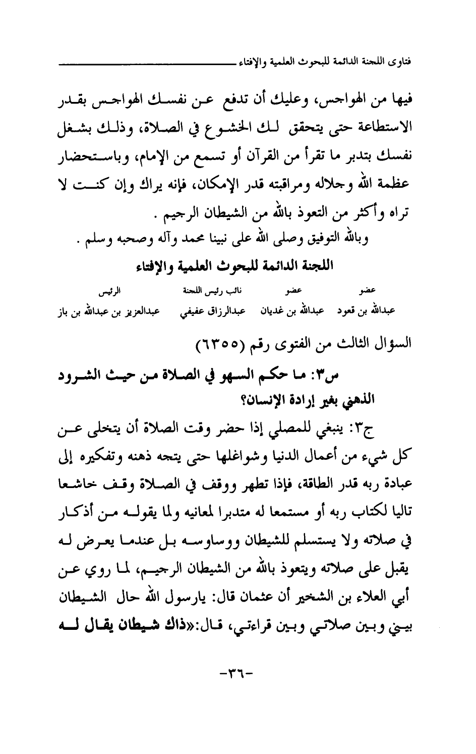 س3: ما حكم السهو في الصلاة من حيث الشرود الذهني بغير إرادة الإنسان؟