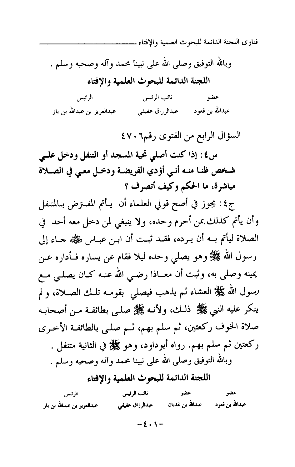 ج2: إذا كان واقع هؤلاء المصلين كما ذكر وجب على من أدرك الركعة الأولى والثانية مع الإمام الأول، ألا يقوم مع الإمام الثاني حينما يقوم لإتمام صلاته، بل يجلس مكانه؛ لأنه قد صلى أربع ركعات، وهي فرضه، وليس له أن يسلم قبل إمامه؛ لما ثبت عن النبي صلى الله عليه وسلم أنه قال: «إنما جعل الإمام ليؤتم به (¬1) » الحديث، متفق عليه ولقوله صلى الله عليه وسلم: «إني إمامكم فلا تسبقوني بالركوع ولا بالسجود ولا بالقيام ولا بالانصراف (¬2) » أخرجه مسلم في صحيحه.