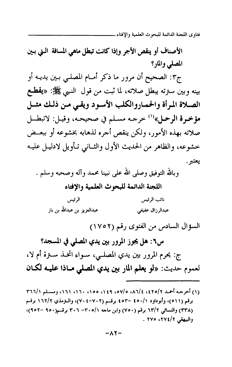 س6: هل يجوز المرور بين يدي المصلي في المسجد؟