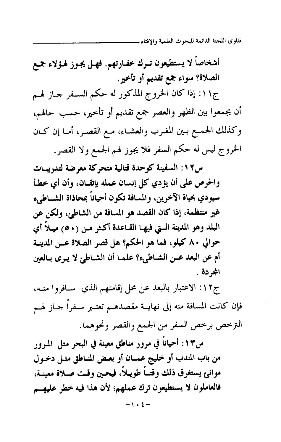 س12: السفينة كوحدة قتالية متحركة معرضة لتدريبات والحرص على أن يؤدي كل إنسان عمله بإتقان، وأن أي خطأ سيودي بحياة الآخرين، والمسافة تكون أحيانا بمحاذاة الشاطئ غير منتظمة، إذا كان القصد هو المسافة من الشاطئ، ولكن عن البلد وهو المدينة التي فيها القاعدة أكثر من (50) ميلا أي حوالي 80 كيلو، فما هو الحكم؟ هل قصر الصلاة عن المدينة أم عن البعد عن الشاطئ؟ علما أن الشاطئ لا يرى بالعين المجردة.