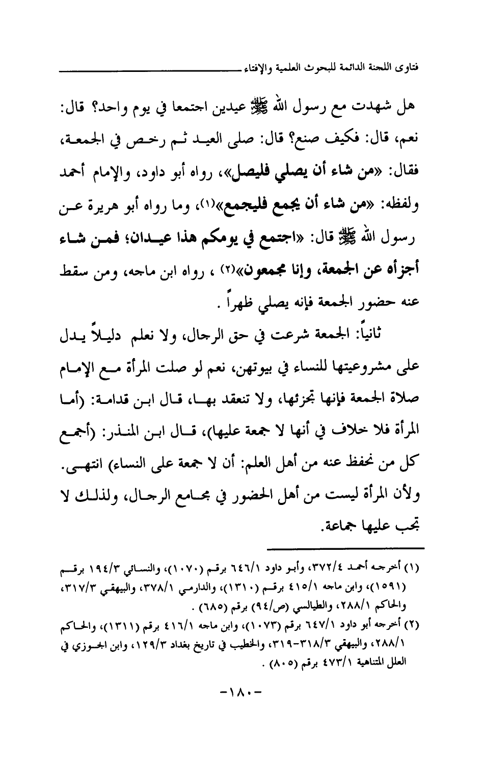 (¬2) أخرجه أبو داود 1 / 647 برقم (1073) ، وابن ماجه 1 / 416 برقم (1311) ، والحاكم 1 / 288، والبيهقي 3 / 318-319، والخطيب في تاريخ بغداد 3 / 129، وابن الجوزي في العلل المتناهية 1 / 473 برقم (805) .
