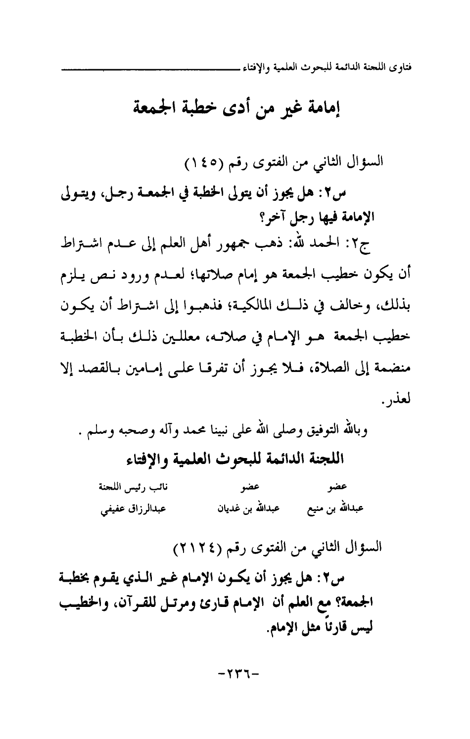 س2: هل يجوز أن يتولى الخطبة في الجمعة رجل، ويتولى الإمامة فيها رجل آخر؟