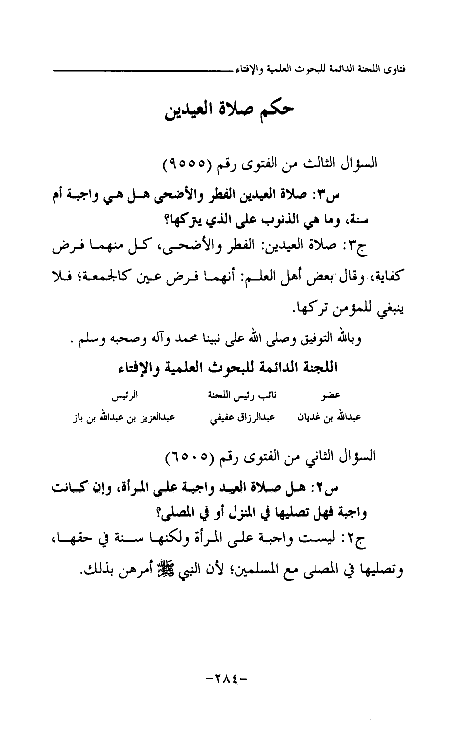 س3: صلاة العيدين الفطر والأضحى هل هي واجبة أم سنة، وما هي الذنوب على الذي يتركها؟