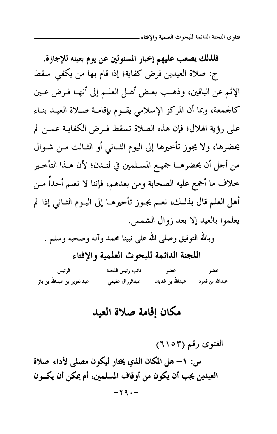 س: 1- هل المكان الذي يختار ليكون مصلى لأداء صلاة العيدين يجب أن يكون من أوقاف المسلمين، أم يمكن أن يكون