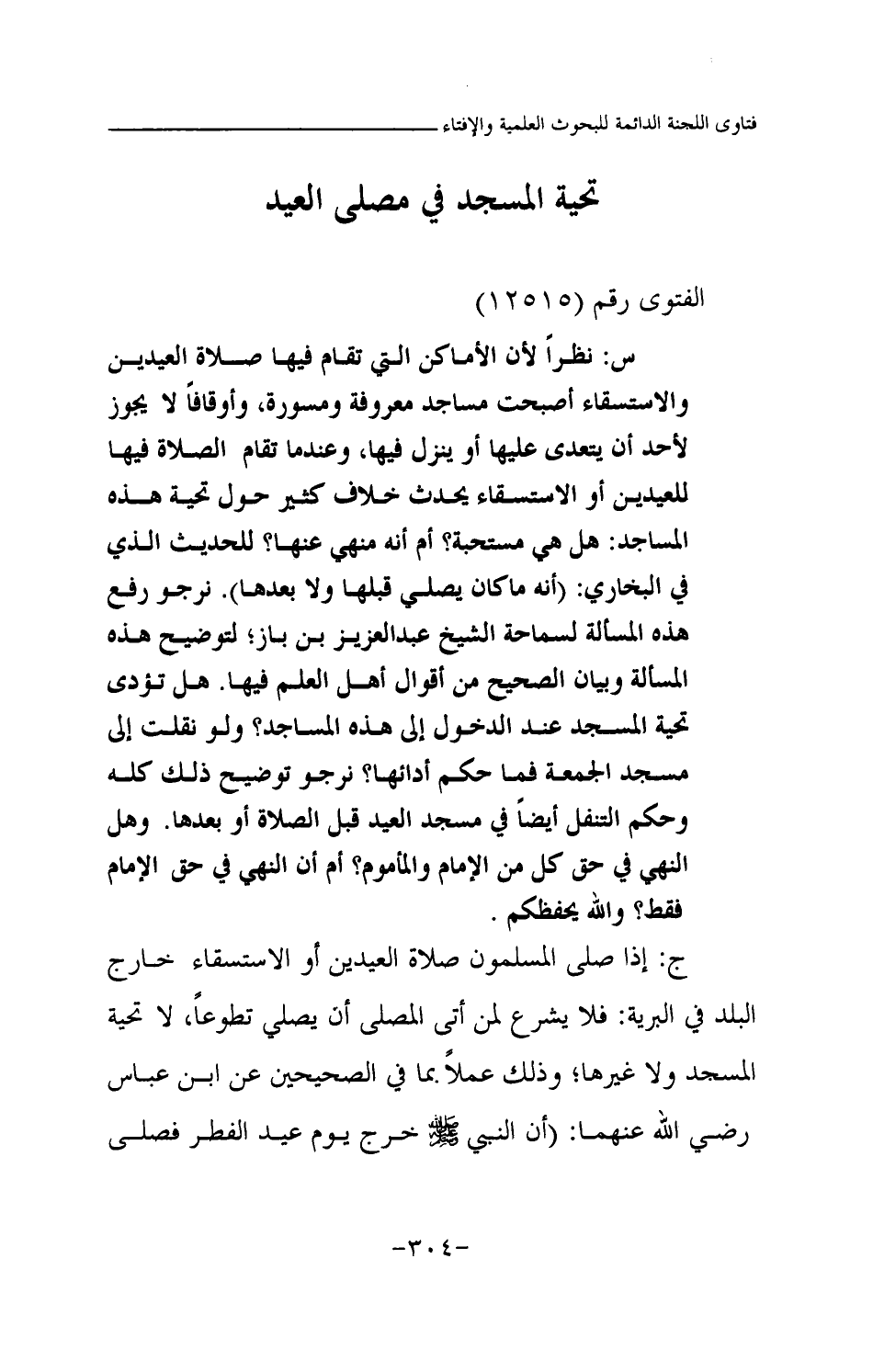 س: نظرا لأن الأماكن التي تقام فيها صلاة العيدين والاستسقاء أصبحت مساجد معروفة ومسورة، وأوقافا لا يجوز لأحد أن يتعدى عليها أو ينزل فيها، وعندما تقام الصلاة فيها للعيدين أو الاستسقاء يحدث خلاف كثير حول تحية هذه المساجد: هل هي مستحبة؟ أم أنه منهي عنها؟ للحديث الذي في البخاري: أنه ما كان يصلي قبلها ولا بعدها. نرجو رفع هذه المسألة لسماحة الشيخ عبد العزيز بن باز؛ لتوضيح هذه المسألة وبيان الصحيح من أقوال أهل العلم فيها. هل تؤدى تحية المسجد عند الدخول إلى هذه المساجد؟ ولو نقلت إلى مسجد الجمعة فما حكم أدائها؟ نرجو توضيح ذلك كله وحكم التنفل أيضا في مسجد العيد قبل الصلاة أو بعدها. وهل النهي في حق كل من الإمام والمأموم؟ أم أن النهي في حق الإمام فقط؟ والله يحفظكم.