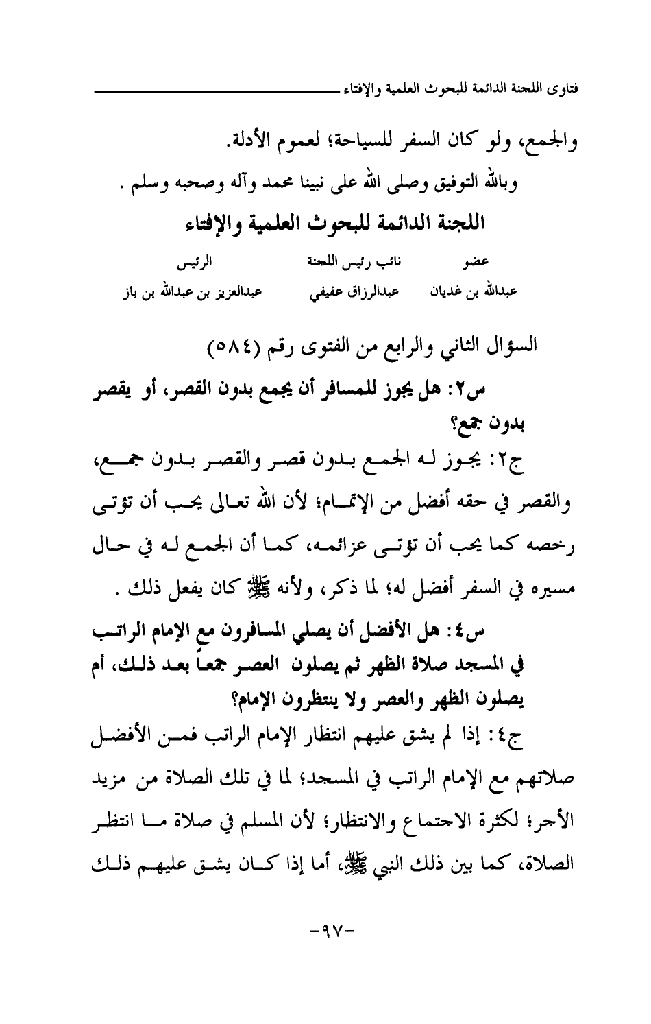 السؤال الثاني والرابع من الفتوى رقم (584)
