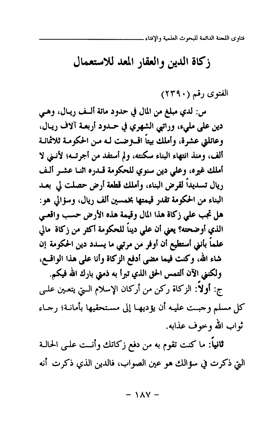 زكاة الدين والعقار المعد للاستعمال