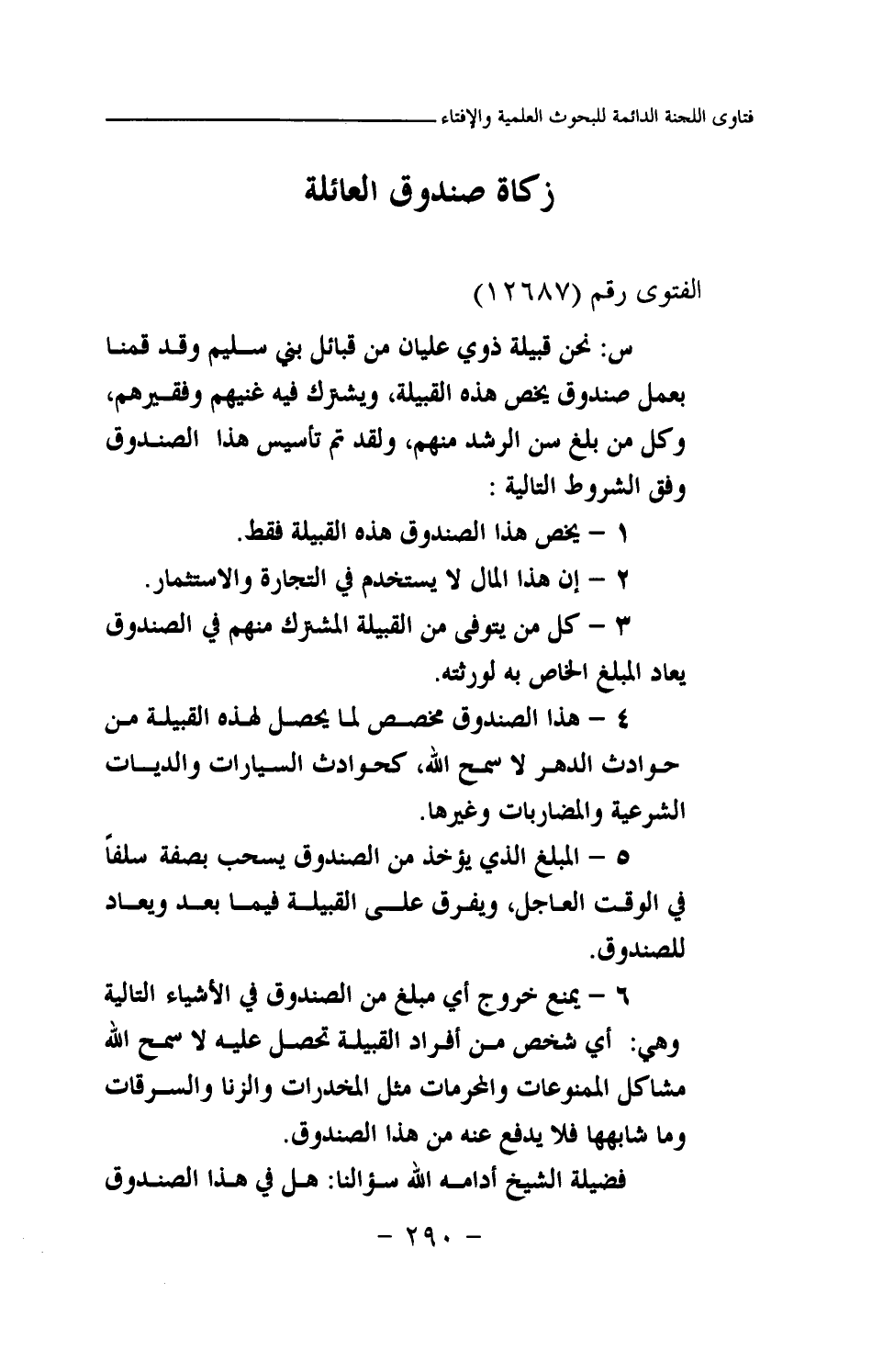 س: نحن قبيلة ذوي عليان من قبائل بني سليم وقد قمنا بعمل صندوق يخص هذه القبيلة، ويشترك فيه غنيهم وفقيرهم، وكل من بلغ سن الرشد منهم، ولقد تم تأسيس هذا الصندوق وفق الشروط التالية: